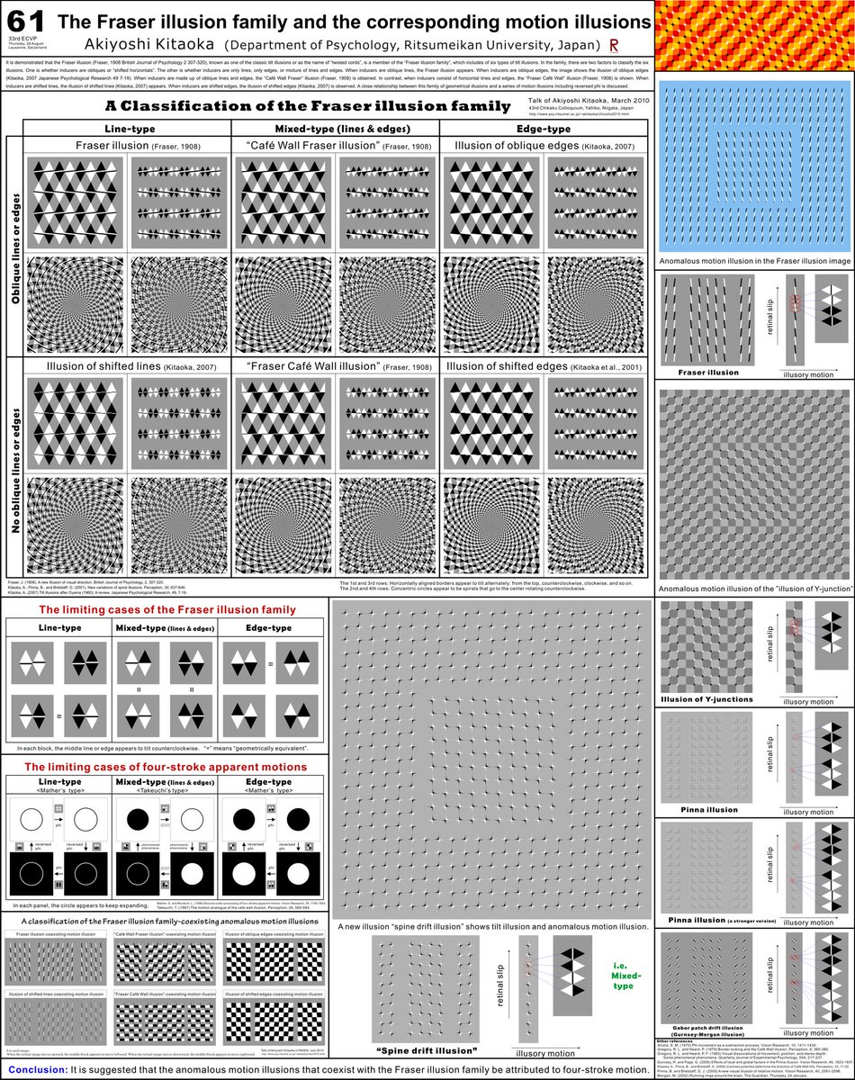 Kitaoka, A. (2010). The Fraser illusion family and the corresponding motion illusions. 33rd European Conference on Visual Perception (ECVP 2010), EPFL, Lausanne, Switzerland, 2010/8/22-26, 8/26 poster publication.pic.twitter.com/a1Lye1Ujg6