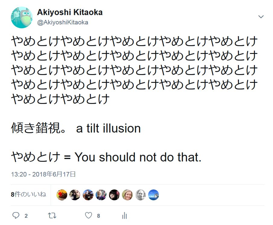 やめとけやめとけやめとけやめとけやめとけやめとけやめとけやめとけやめとけやめとけやめとけやめとけやめとけやめとけやめとけやめとけやめとけやめとけやめとけやめとけやめとけやめとけ 傾き錯視。 a tilt illusion やめとけ = You should not do that.