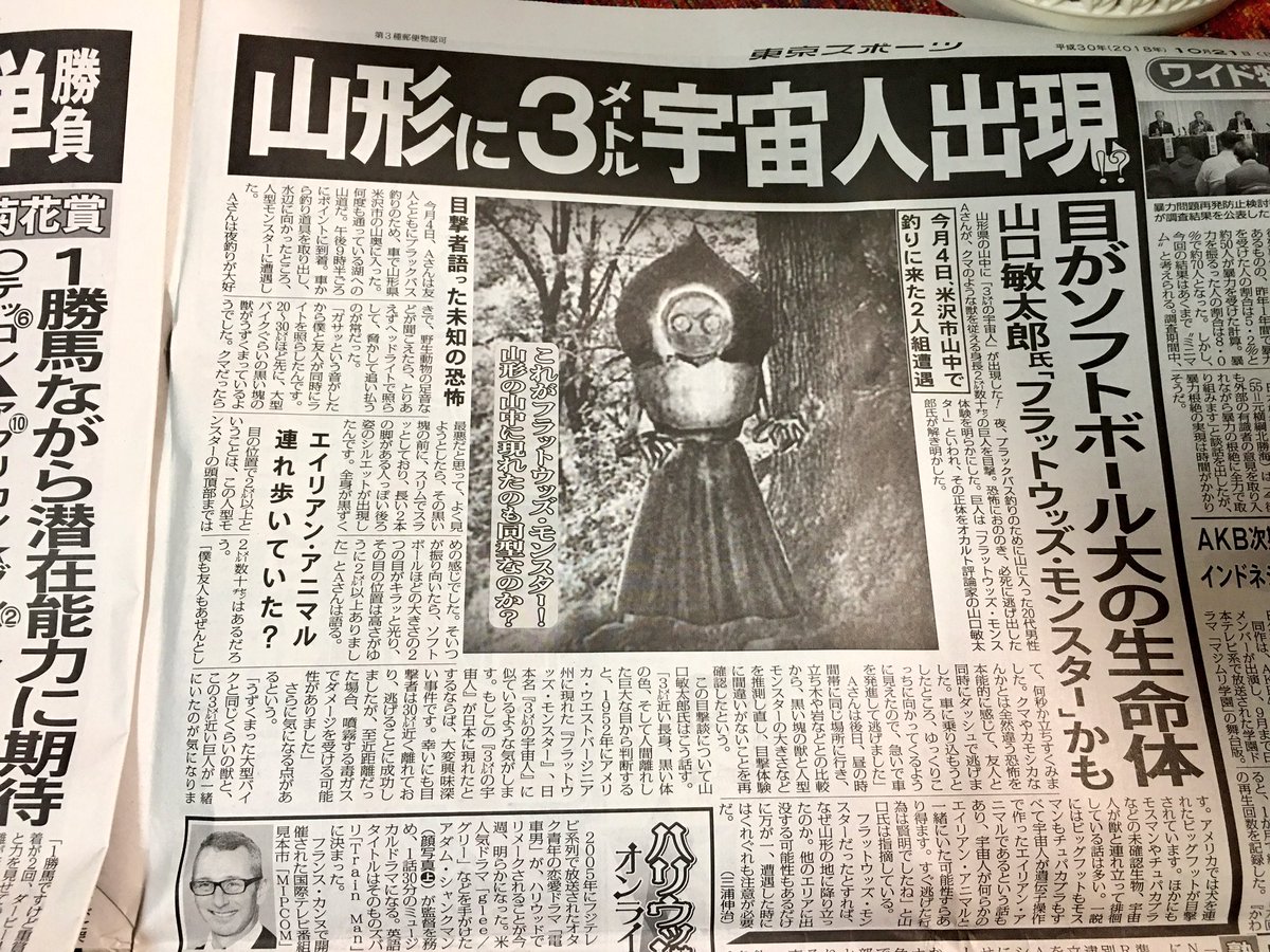 山口敏太郎先生「フラットウッズ・モンスター」かも??と。至近距離だった場合、噴射する毒ガスでダメージを受ける可能性があるようなので出会った際は近づかず逃げてください。