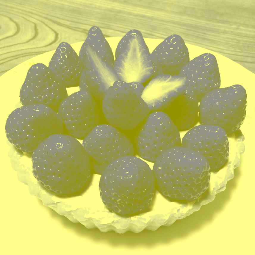 「イチゴの色の錯視の画素にはRの信号が含まれており、それが見えているのであって、錯視ではない」と主張する人がいらっしゃいまして、等色や混色についての基礎知識を持って頂いてから議論したいと思うのですが、この絵ならどうでしょうか。グレースケール画像です。R入ってます。赤く見えますか?pic.twitter.com/fpIjDDYWYn
