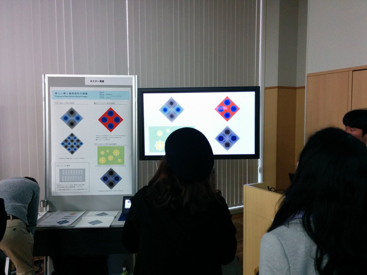 藤原君の錯視に近づいたということでもあるかな。 藤原功基・松田博子・北岡明佳 (2018) 新しい動く錯視図形の提案 平成29年度日本色彩学会関西支部大会 大阪電気通信大学 駅前キャンパス・2018年3月3日(土) (ポスター発表)pic.twitter.com/K4A7tQqpIQ
