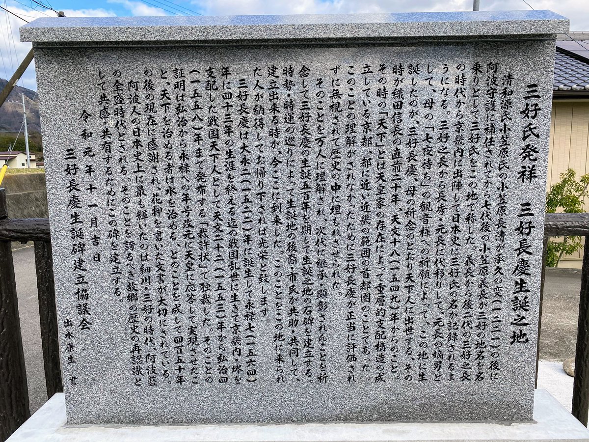 芝生(しぼう)城址(徳島県)を訪れました。ご存知(の人は少ない)、三好長慶(誰?と言われそう)が生まれたところです。いや〜、予想通りの場所でした。普通に田畑と家があるだけでした。三英傑(織田信長・豊臣秀吉・徳川家康)が活躍する直前の天下人なのですけどね。pic.twitter.com/5AgxoVGWlu