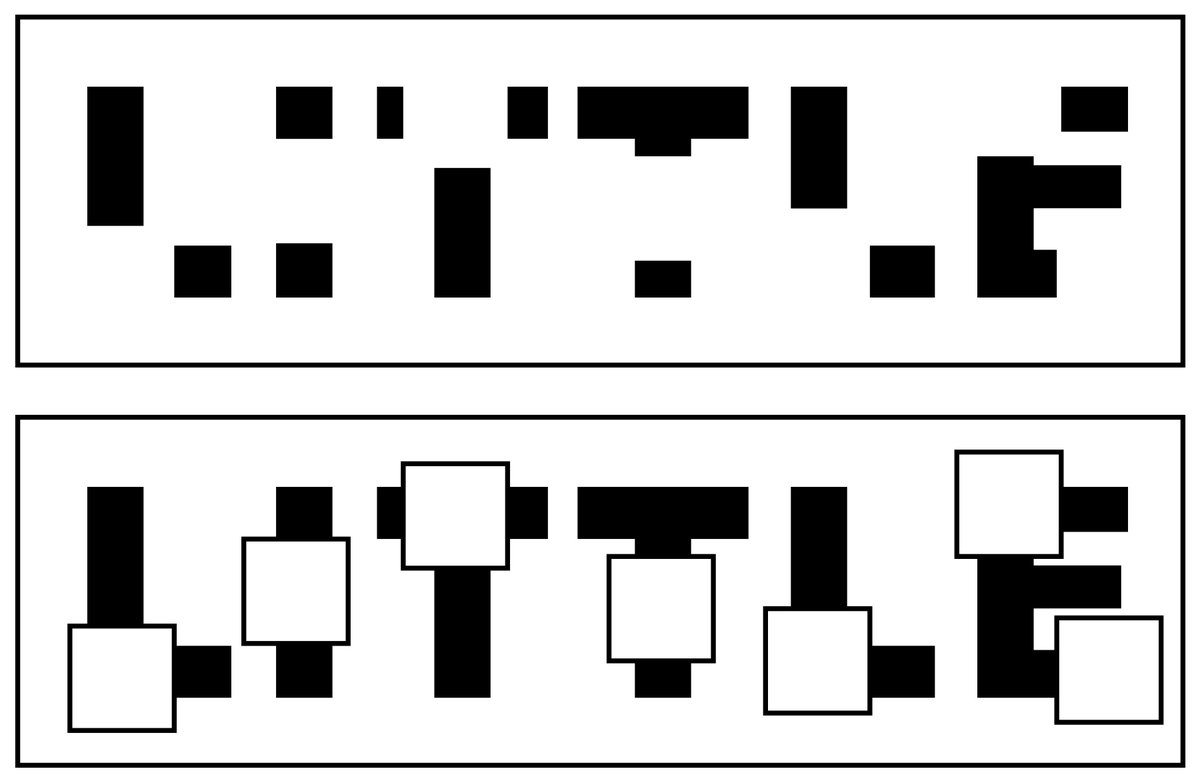 The loss of information seems lowered when not using squares. I guess it's bc. letters and squares have aligned egdes, so that mental reconstruction of letters is way much harder with squared holes.pic.twitter.com/8i03ew88Yv
