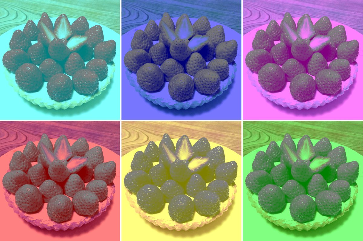 The six color combinations of strawberry illusion イチゴの錯視いろいろ・まとめpic.twitter.com/XKWGWB3LmZ