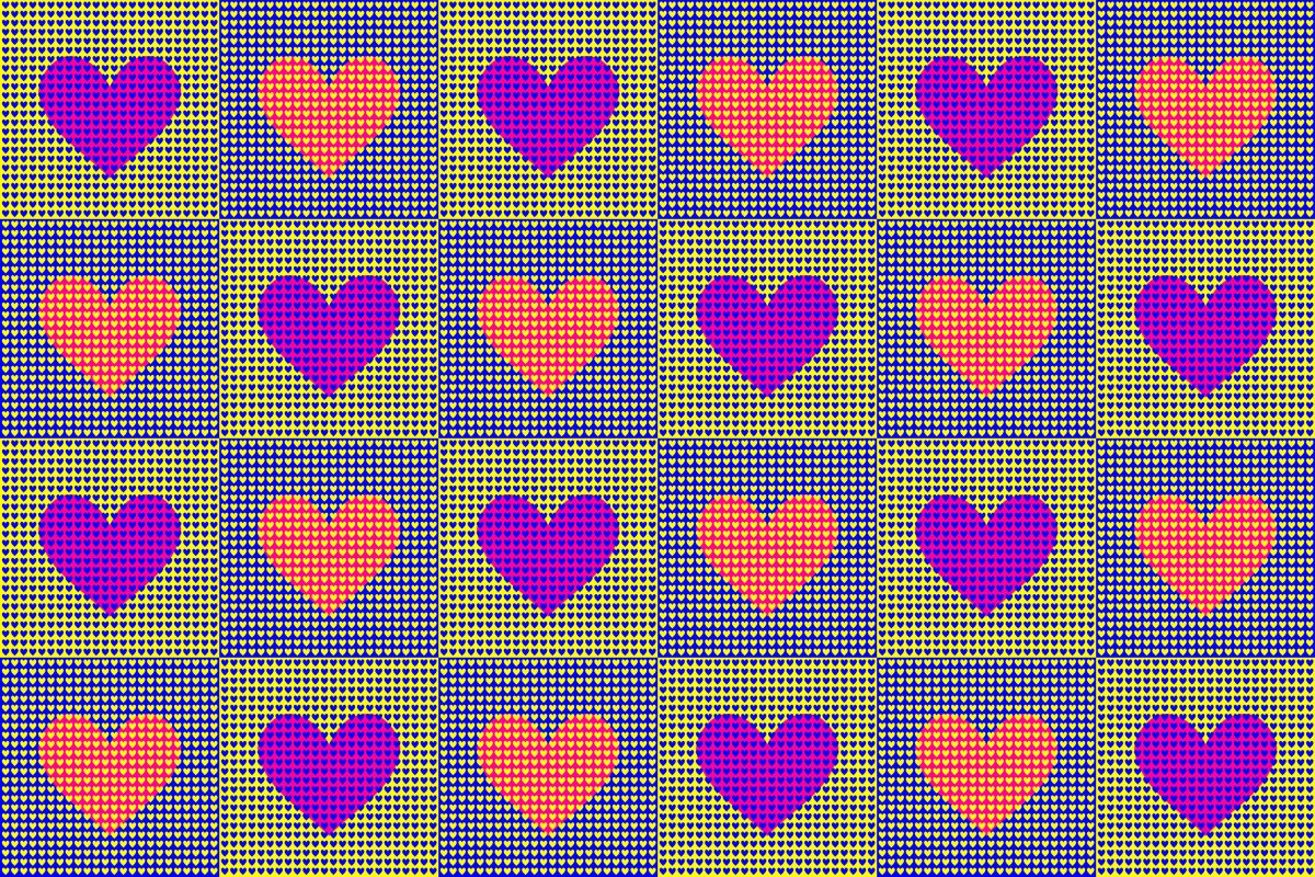 This image includes three colors of hearts: red, yellow and blue. Apparent red-purple and orange are illusory.pic.twitter.com/wekYErPjjH