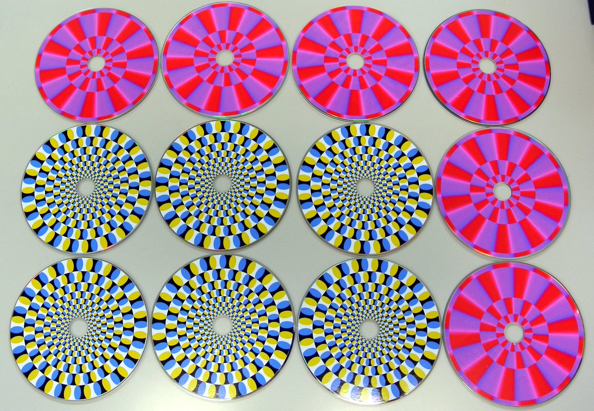 「中段左端の円盤の下のへりにあるオレンジ色の光沢が左に動いて見える」という観察報告をした場合、同意が得られるのか、見えないぞと言われるのか。 pic.twitter.com/6EuQ72aR7N