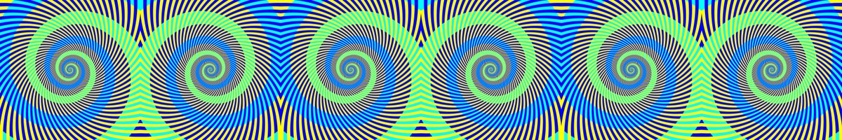 「シアンの渦巻き」 きれいな水色の螺旋と明るい青緑色の螺旋があるように見えるが、どちらも同じシアン色(R = 0, G = 255, B = 255)である。pic.twitter.com/6KyjZqIIqD