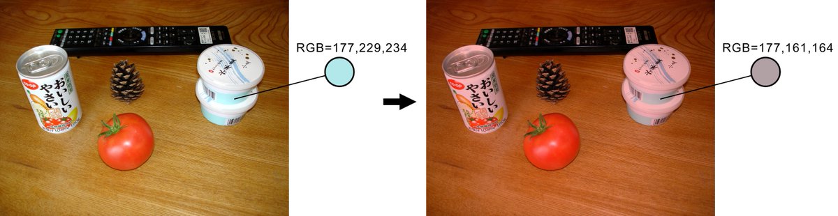 水羊羹の下半分は水色に見えるが、画素はほぼ灰色の赤色である。 Reddish gray appears to be light blue.pic.twitter.com/BQTHebsfrw