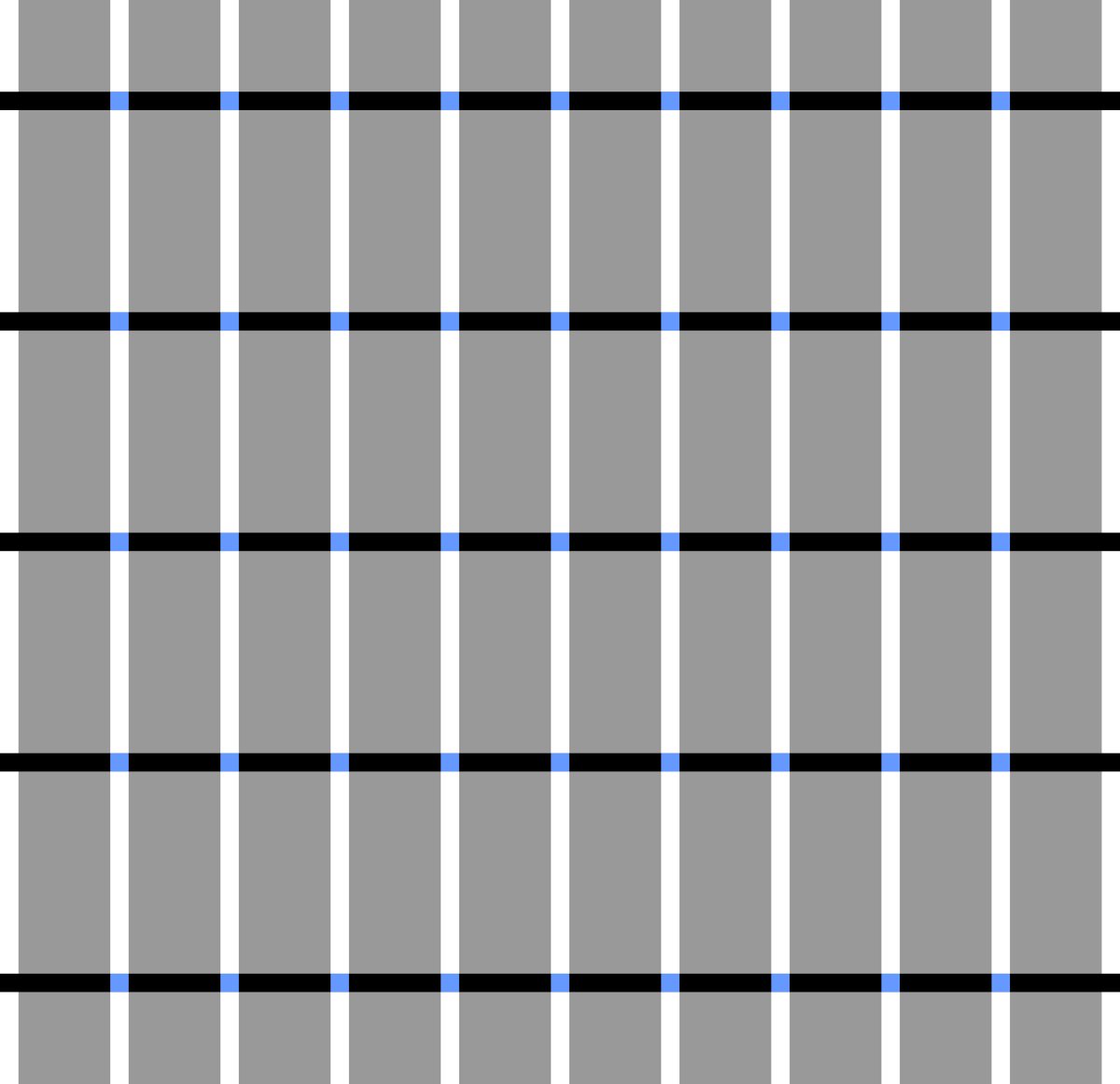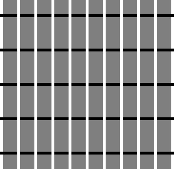 Illusory dark blobs appear to scintillate in white columns after some eye movement. 本日の新作です。LINE NEWSの図に見つけた錯視を最適化しました。へリング格子錯視の陰性残像という説明を真っ先に思いつくところですが、それでは説明にならないような気がします。pic.twitter.com/InPtXNfEAW