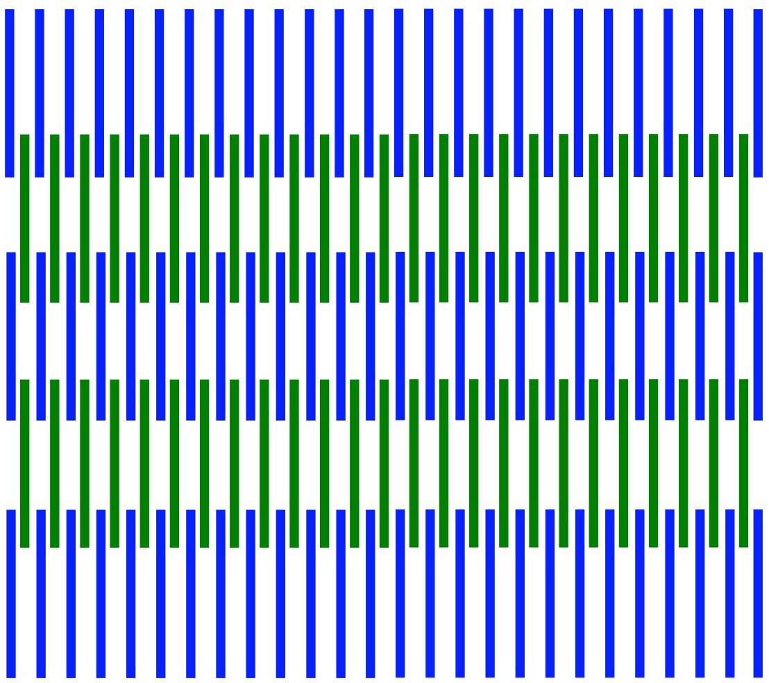 Another inspiration from @AkiyoshiKitaoka! Color completion illusions similar to the Sohmiya illusion can be created with straight lines rather than waves. For example, here are blue and green lines that produce a yellowish illusory color between the green lines. More to come.pic.twitter.com/E5iJKRJwDj
