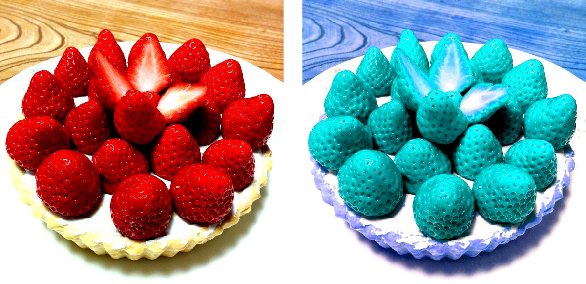 A demo of binocular rivalry where strawberries appear to be reddish or bluish (cyan hue) observed when the two image is stereo-fusedpic.twitter.com/h8ofgLiCTO