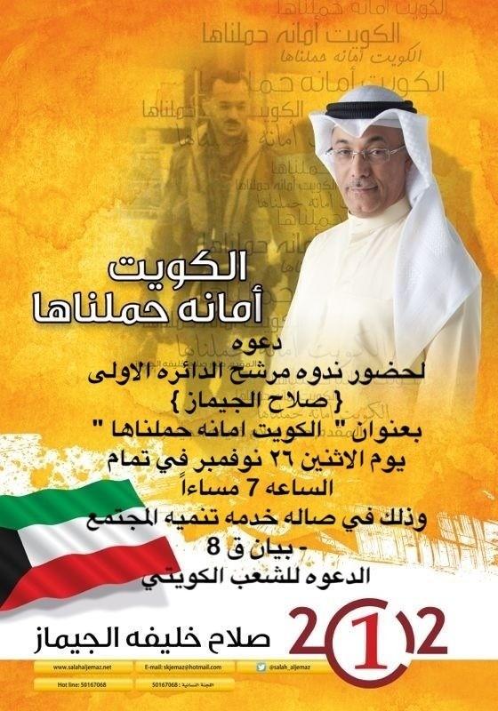 @mishari_alafasy دعوه خاصه شيخ لحضور ندوه مرشح الاولى صلاح الجيماز بعنوان "الكويت امانه حملناها"الاثنين ٢٦ نوفمبرpic.twitter.com/uCNrkWii