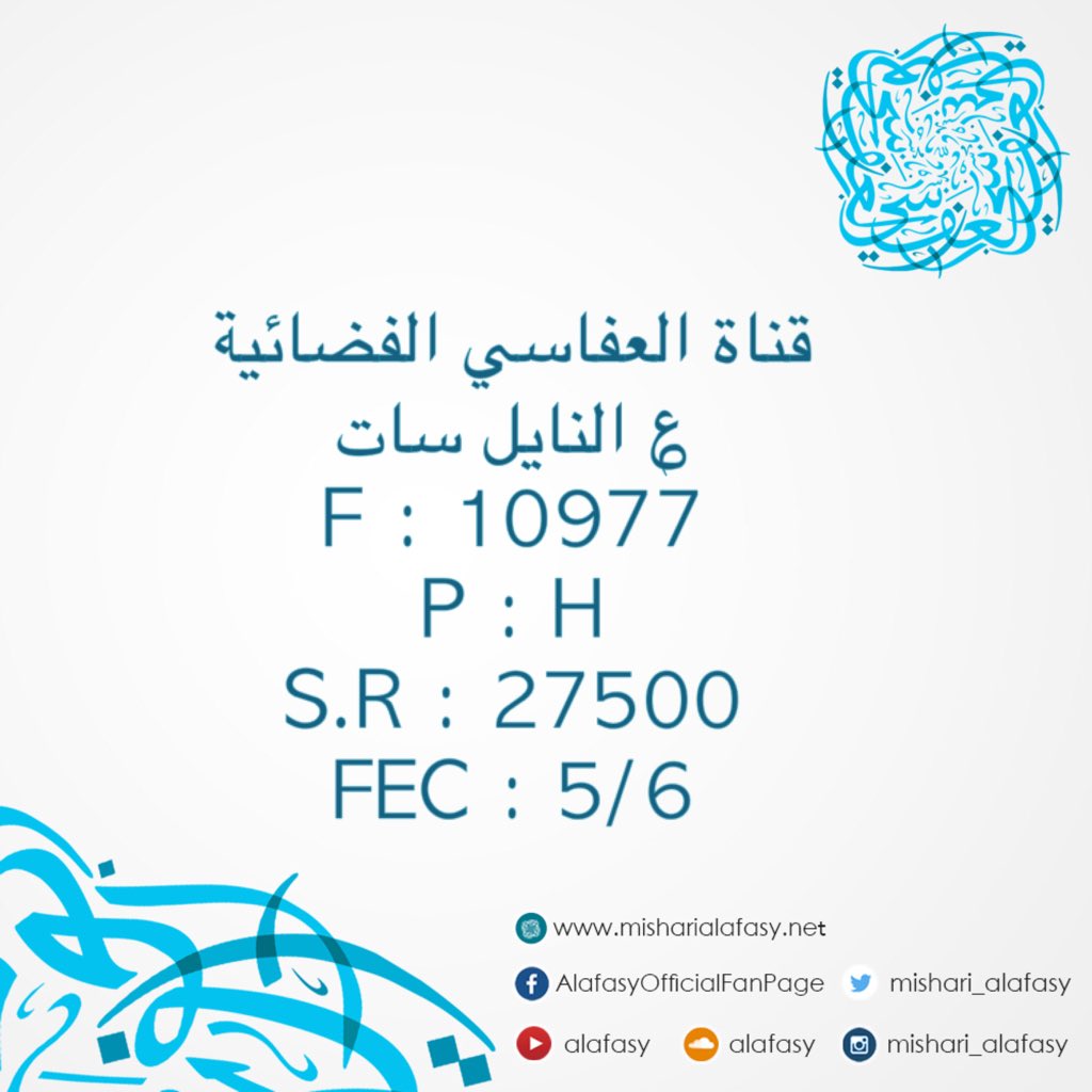 تردد قناة العفاسي : Nilesat F:10727 P:H S.R:27500 FEC:aut