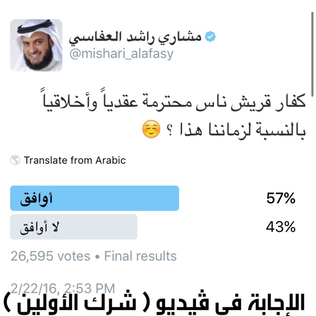 “@mishari_alafasy: هذه نتيجة الإستفتاء والجواب في هذا الڤيديو من سناب mishari_alafasy : http://youtu.be/yJdJarJKPcw pic.twitter.com/sfEgRK5vm7”