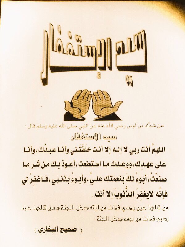 نمت ونحن طبعا نكره الموت وانت تدفعنا ان نموت دفعا ببركات سيدك هذا سيد الاستغفار