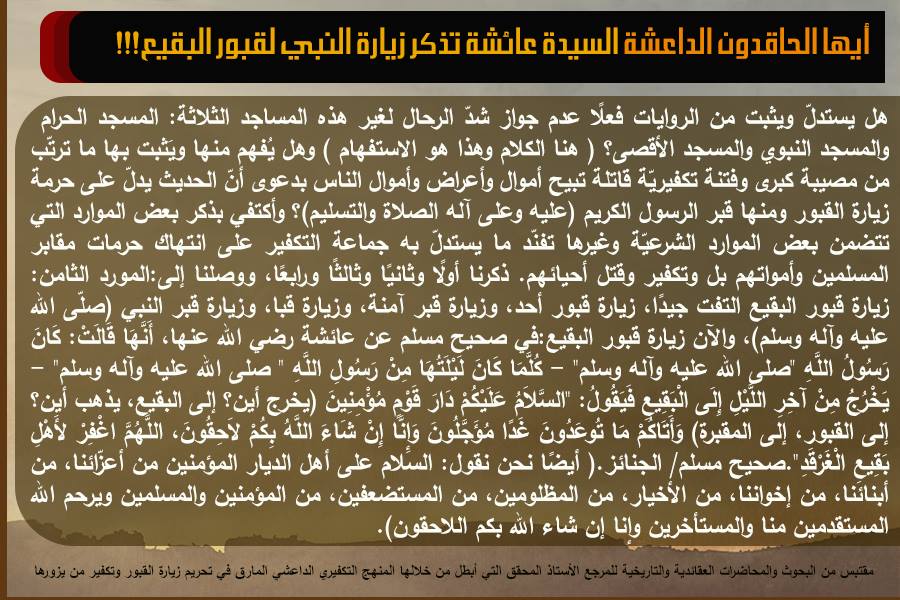 أيها الحاقدون الداعشة السيدة عائشة تذكر زيارة النبي لقبور البقيع!!!https://twitter.com/alsrkhyalhasany/status/923229612410359808 …
