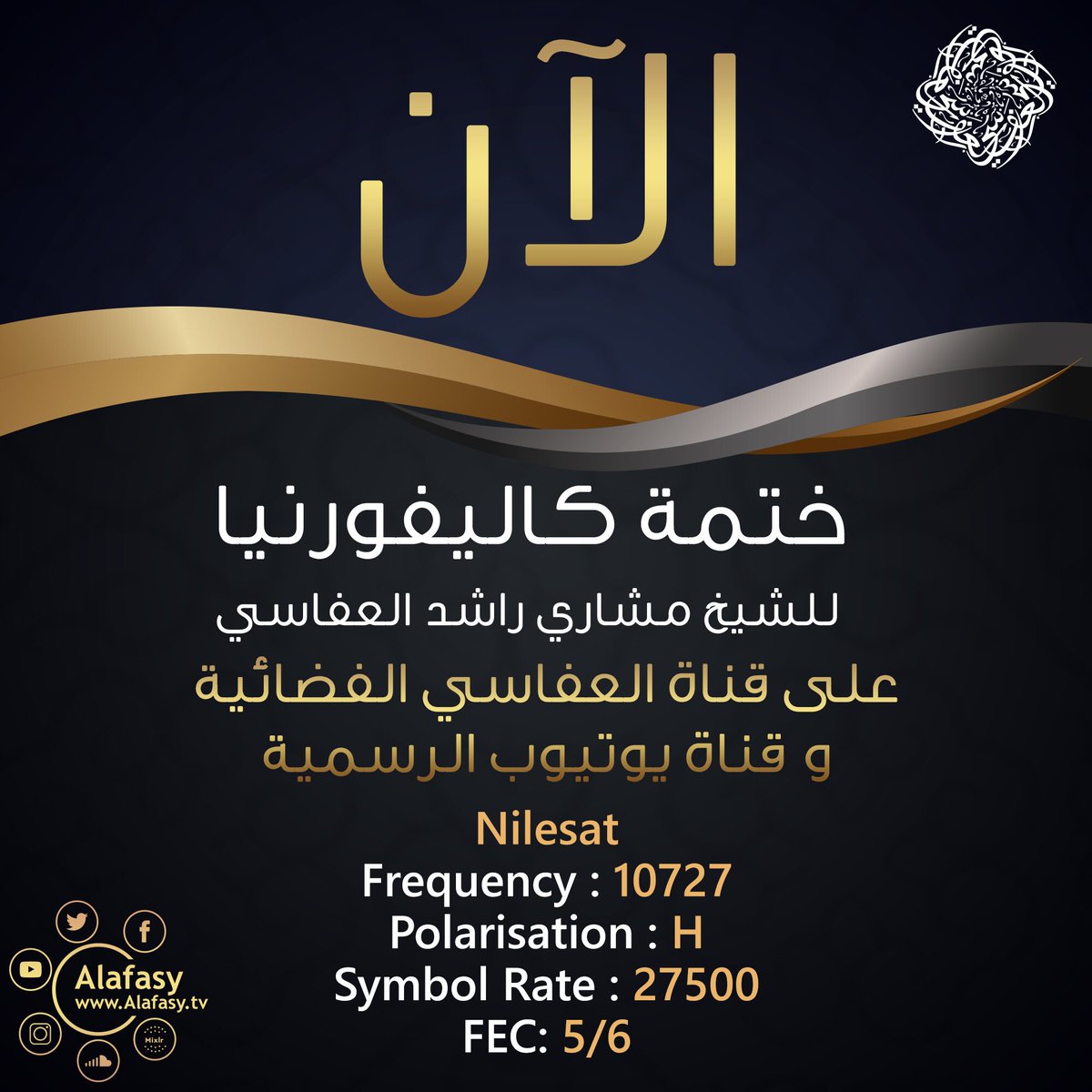 تردد قناة العفاسي : Nilesat F:10727 P:H S.R:27500 FEC:aut