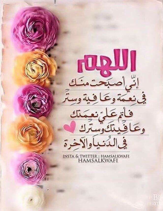 اللهم اني أصبحت منك في نعمة وعافيه وستر فأتم علي نعمتك وعافيتك وسترك في الدنيا والاخرة