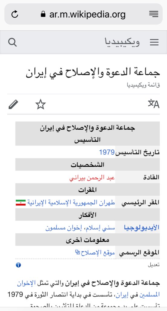 هذه الجماعة أسستها استخبارات الحرس الثوري باستشارة بريطانية تزامنا مع مجيء الخميني من فرنسا. الجماعة تمثل تنظيم الإخوان المفسدين ولها تواصل مع المرشد العام للخٌوَّان وأقرب التنظيمات تعاونا معها تنظيم الخُوَّان في الكويت وفي العراق.حاليا تتركز أنشطة الجماعة في الأحواز وبلوشتان.