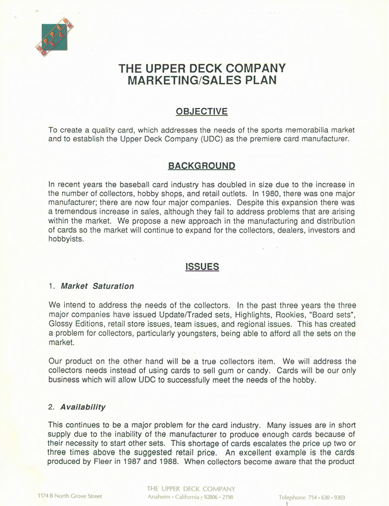 Darren Rovell @darrenrovellOriginal Upper Deck sales & marketing plan from employee archives (via@SAGECards) pic.twitter.com/FaxIJC16vz0 retweets 0 likes