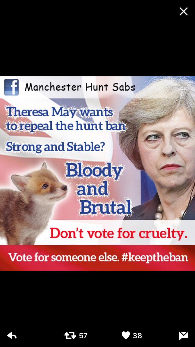 Bloodthirsty Theresa May wants to bring back fox hunting. Don't let her get her way. Keep the ban of fox hunting.
