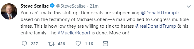 Steve Scalise apparently deleted this tweet, which falsely blamed Democrats for the Donald Trump Jr. subpoenapic.twitter.com/gxFJK7EBvV