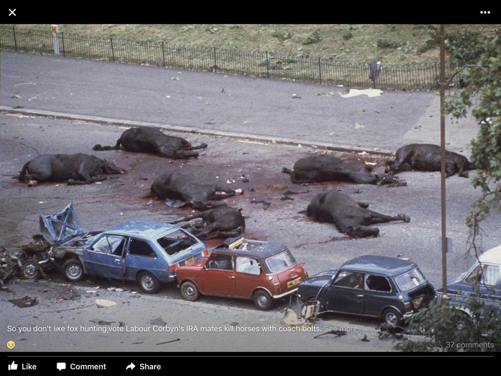 Corbyn supports the IRA who blows up horses yet it apposed to hunting I'll never forget it will you.