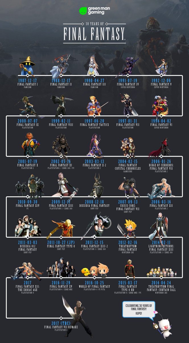 Want to know more about the history of Final Fantasy? Check this timeline out here! http://bit.ly/2lv7v14 pic.twitter.com/fFYpdQfclJ