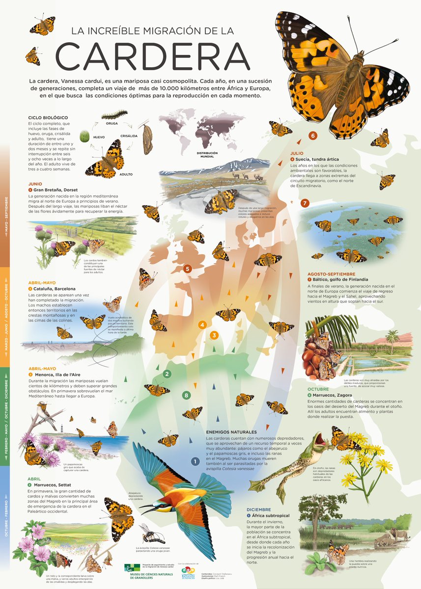 Nueva infografia – pòster! La increible migración de la cardera Contamos el fascinante cicló biológico de una especie que cada año completa un viaje de más de 10.000 km en diferentes geneaciones. Descargala aquí!