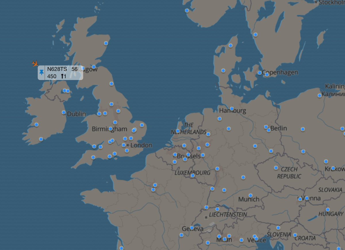 Say hello to SpaceX'/Elon Musk's Gulfstream G650ER entering European airspace. Wonder what its business here is?