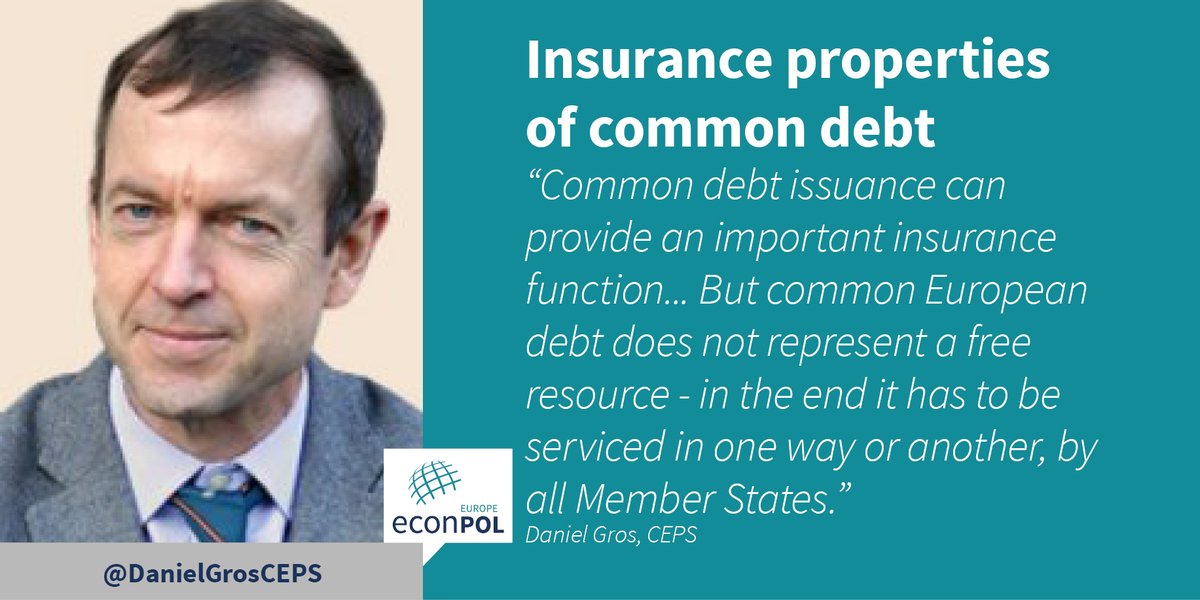 #EconPol2020 day 2,@DanielGrosCEPS discusses his upcoming paper on the insurance properties of common debt. He gave us an overview of the topic and what it means for the EU and member states https://www.econpol.eu/opinion_40 pic.twitter.com/CLJUBwdRAA