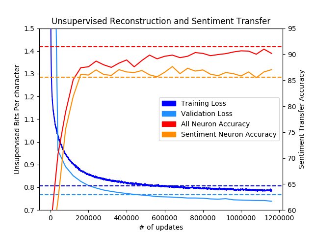 A replication of Learning To Generate Reviews and Discovering Sentiment by Raul Puri at NVIDIA https://github.com/NVIDIA/sentiment-discovery …pic.twitter.com/2fWujHU4UN