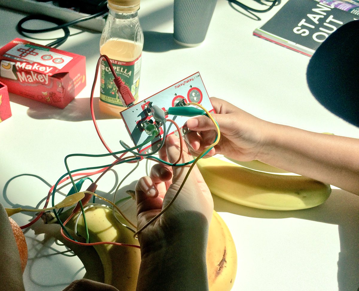 @McrCoderDojo 46 today & he's learning how to use a#MakeyMakey to make#music