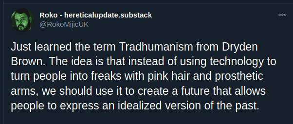 Words cannot express how delicious it's been to watch the reactionaries run the fuck away from transhumanism because hair color is scary or some nonsense. One more push and y'all can become primitivists with a coherent position! Why halfass this shit? Return to monke already.pic.twitter.com/DGsaSvPkrK