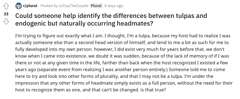 The disease of not knowing that different sound fonts in your head aren't different people.