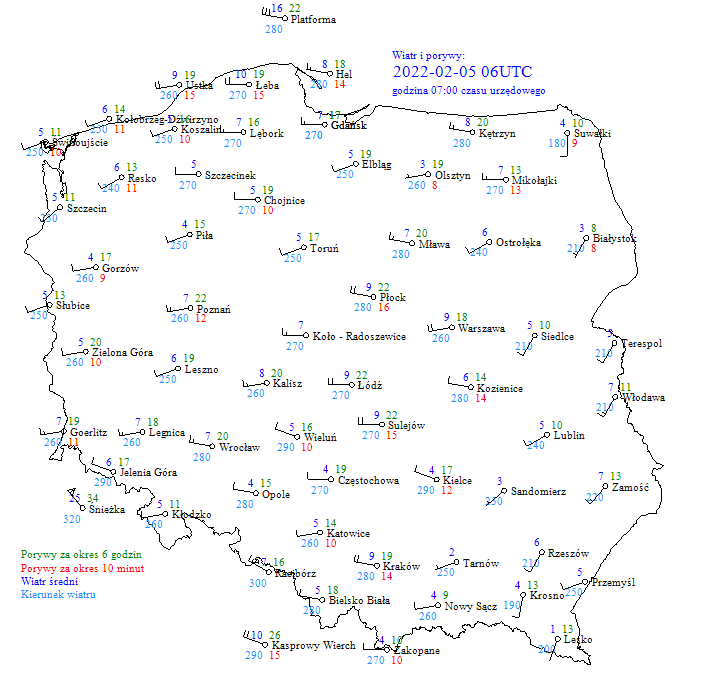 Poza górami porywy do 80km/h odnotowano w centralnej i zachodniej Polsce oraz na Bałtyku.