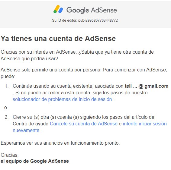 al intentar ingresar con la cuenta que quiero monetizar me salta el mismo error el cual dice que un solo usuario no puede tener 2 cuentas de adsense, me da la opción de marcar una casilla en la cual confirmo que ya he corregido el error, la marco y me sale estopic.twitter.com/jRAsvvQsPy