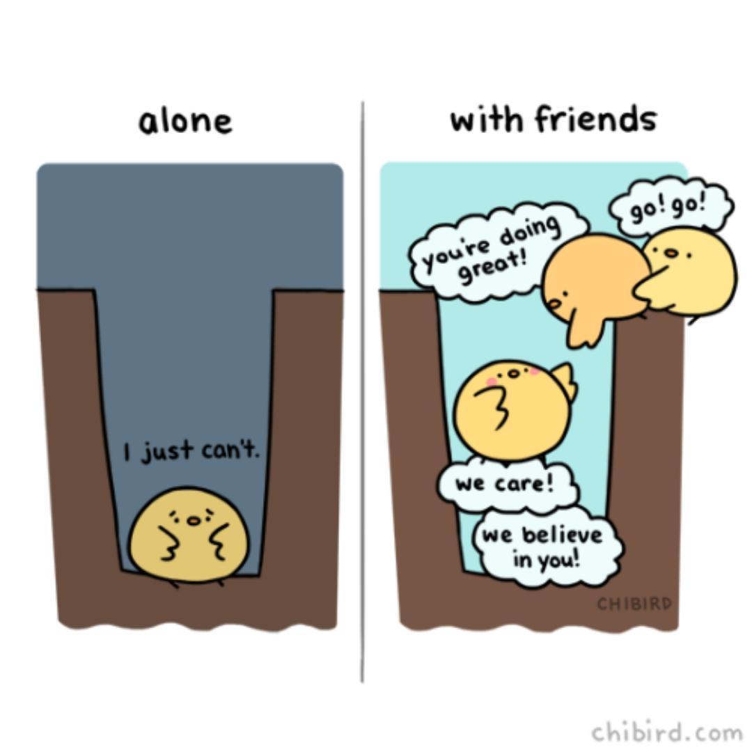 When we are struggling or alone, it's often the words and kindness of friends who reach out and pull us through. Remember, we all have the tools and ability to reach out and support those around us. Image from the talented