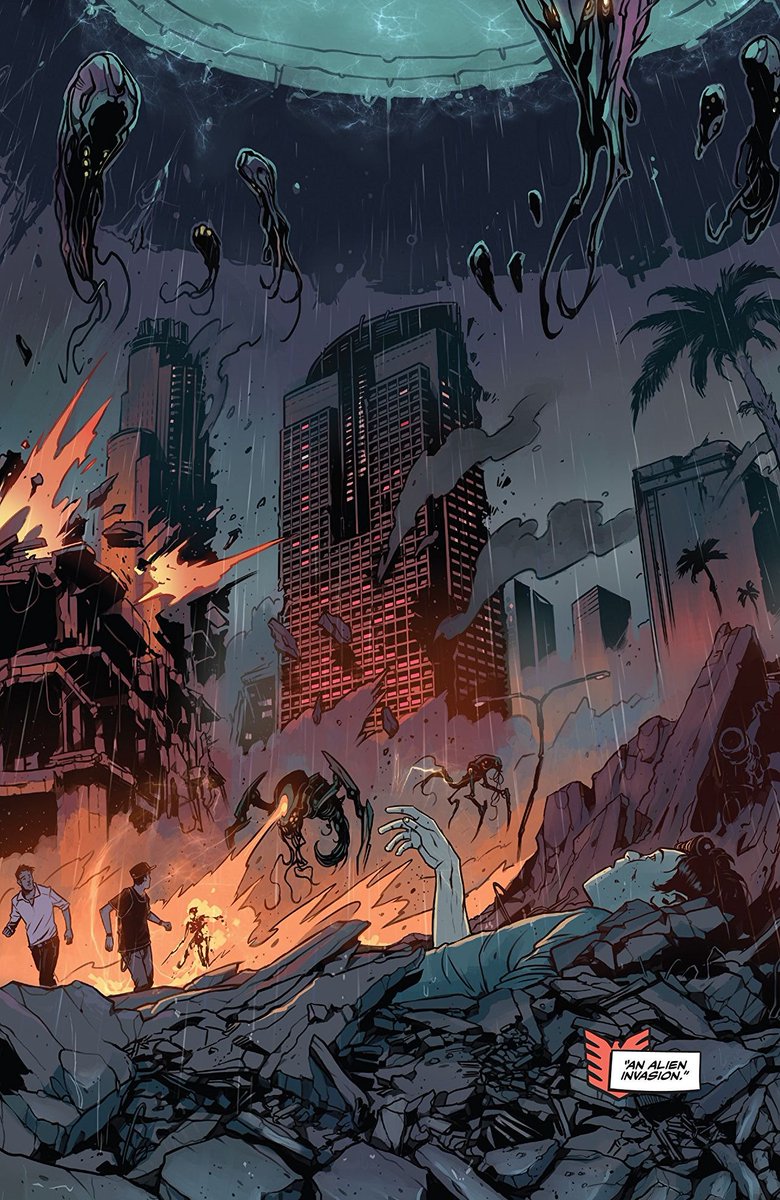 On first read, the obvious reference point was Ellis/Hitch’s AUTHORITY: page-filling destruction on a city scale, stacks of those famous widescreen panels, hyper-violence and neologistically overblown action-hero dialogue.pic.twitter.com/sTJqaMa1F4