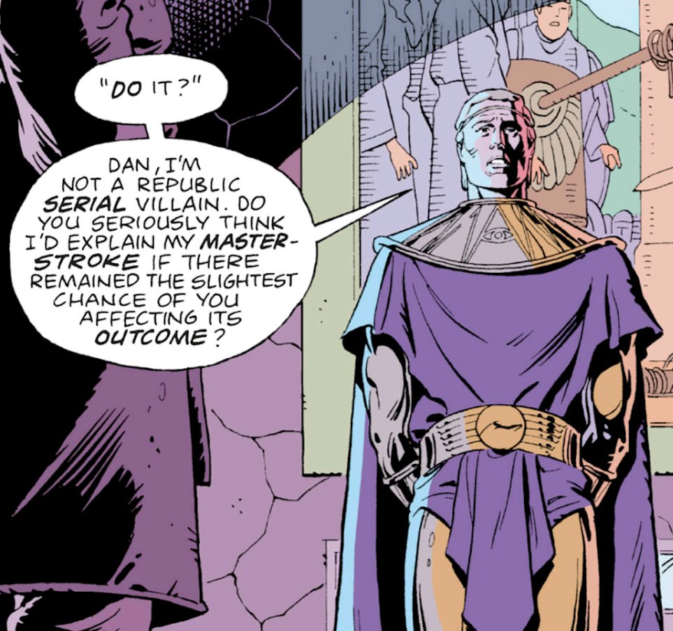 (And, as @trivia_lad pointed out, the issue's title – “Watch” – is the perfect halfway point between its two main influences. “Stormwatch” and “Watchmen”, colling in an Ellis-esque single-word title.)pic.twitter.com/b4mXt5Yjgl