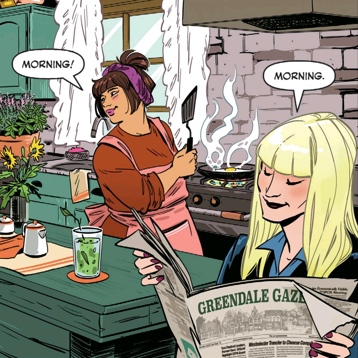 We don't get much time to really dive into their personalities, but there's some brilliant efficiency at work in the dialogue here: the small difference between their "Morning"s tells you everything you need to know about each Aunt in a single piece of punctation.pic.twitter.com/8b59NCpObs