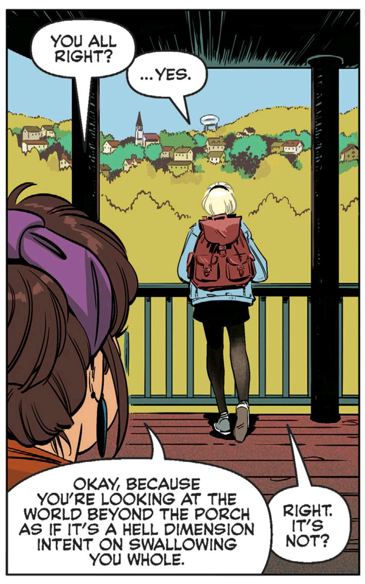 This issue goes a lot heavier on the high-school than the horror, but there are a few moment that suggest how the latter might come out in future issues. These lines of dialogue definitely feel like a statement of intent, pointing to a Buffy-style 'high school is hell' approach.pic.twitter.com/CdXOaeXFwr