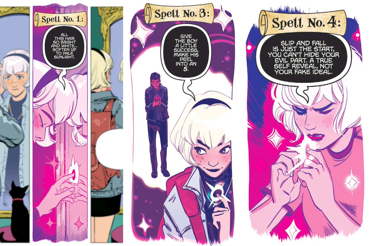 The match-cut is a surprisingly rare technique in comics, but it can be really effective. Like these panels, emphasising the contrast between Sabrina before and after.pic.twitter.com/5W2jVsy8uo
