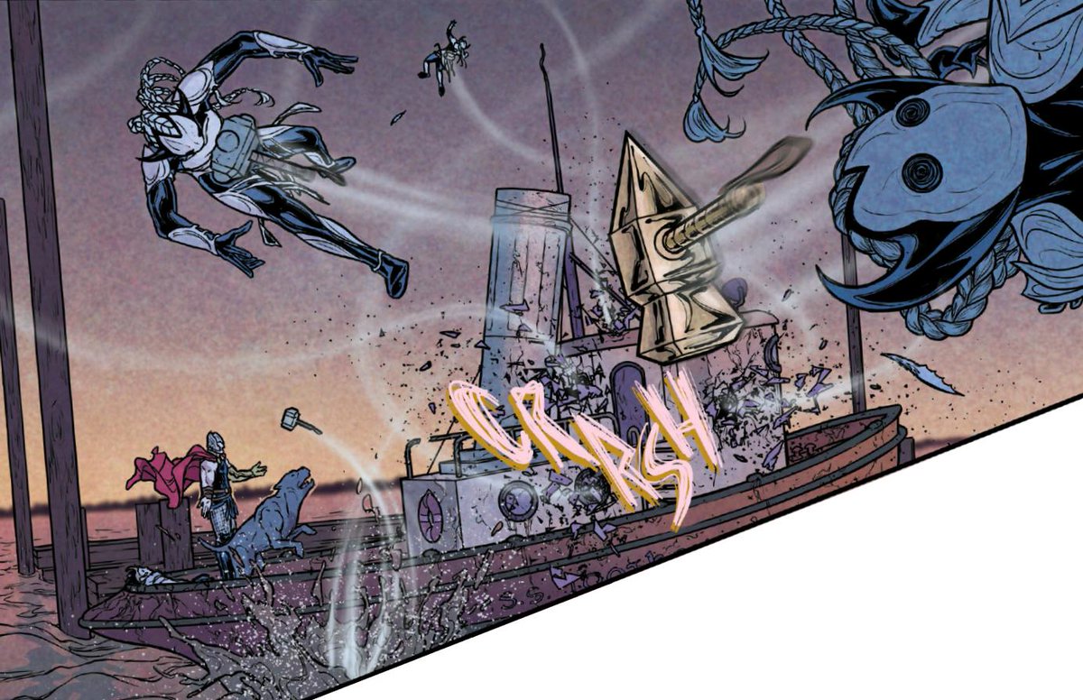 TIM: Dauterman once again deploying some unique panel structure. The arrow-shaped panels offer a close-up of the action they are pointing to, while also lining up nicely with the angle of the Frost Giants’ spears.pic.twitter.com/iE7ah7KiJJ
