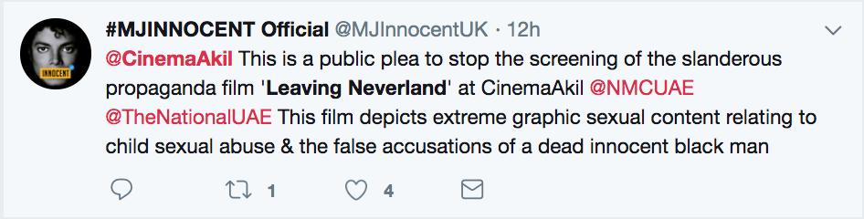 Dubai's arthouse cinema Cinema Akil is being subjected to targeted campaign for showing L*aving N*verland later this month by diehard fans, who it doesn't seem actually are in the UAEpic.twitter.com/W7xaEK0Azb