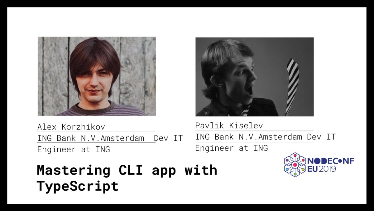 @AlexKorzhikov and Pavlik Kiselev will show you how to design and build best practice CLI tools using Typscript. Tickets: https://nf.ie/2lBp19u#NodeConfEU#Nodejs#Typescriptpic.twitter.com/UZpY6hPcGL