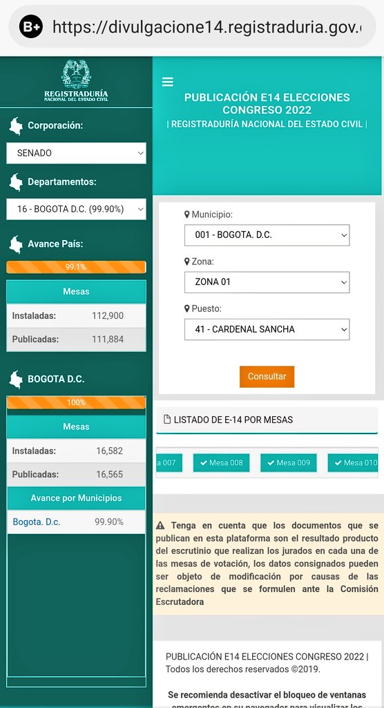 @Registraduria dice que denunciar fraude por los tachones del E-14 es una fake news, que lo procede es el reconteo. En beneficio de la duda digamos que todo bien. ¿Pero entonces por qué han deshabilitado la opción de descargar el formulario E-14 de todas las mesas?pic.twitter.com/kKOfZZ27no