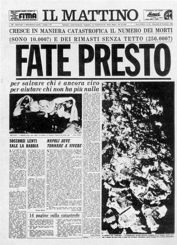 #terremoto in#Irpinia. Durò oltre un minuto la terribile scossa che rase al suolo 36 paesi al confine tra la Campania e la Basilicata. Le istituzioni trassero lezione dalle fragilità emerse: dopo quel 23 novembre 1980 nacque la#ProtezioneCivile.pic.twitter.com/SXboiIiyAo