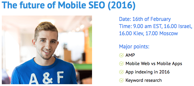 #SEO 2016 | FREE#webinar 9am EST T Feb 16@royhinkis on AMP, APPs & ASO (I'll guest) http://webpromo.expert/the-future-of-mobile-seo-2016/ … pic.twitter.com/blxUEC2egu