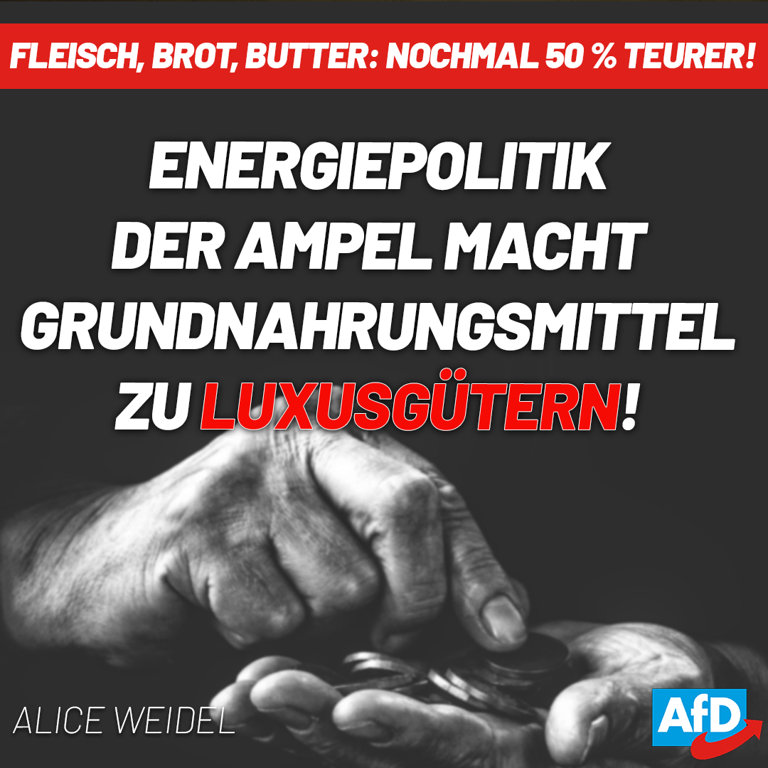 Ob Landwirt, Molkerei, Spediteur oder Lagerist, sie alle haben durch das Totalversagen der Ampel enorme Mehrkosten zu stemmen, die sie an die Verbraucher weitergeben. Grundnahrungsmittel werden durch die Energiepolitik zu Luxusgütern.